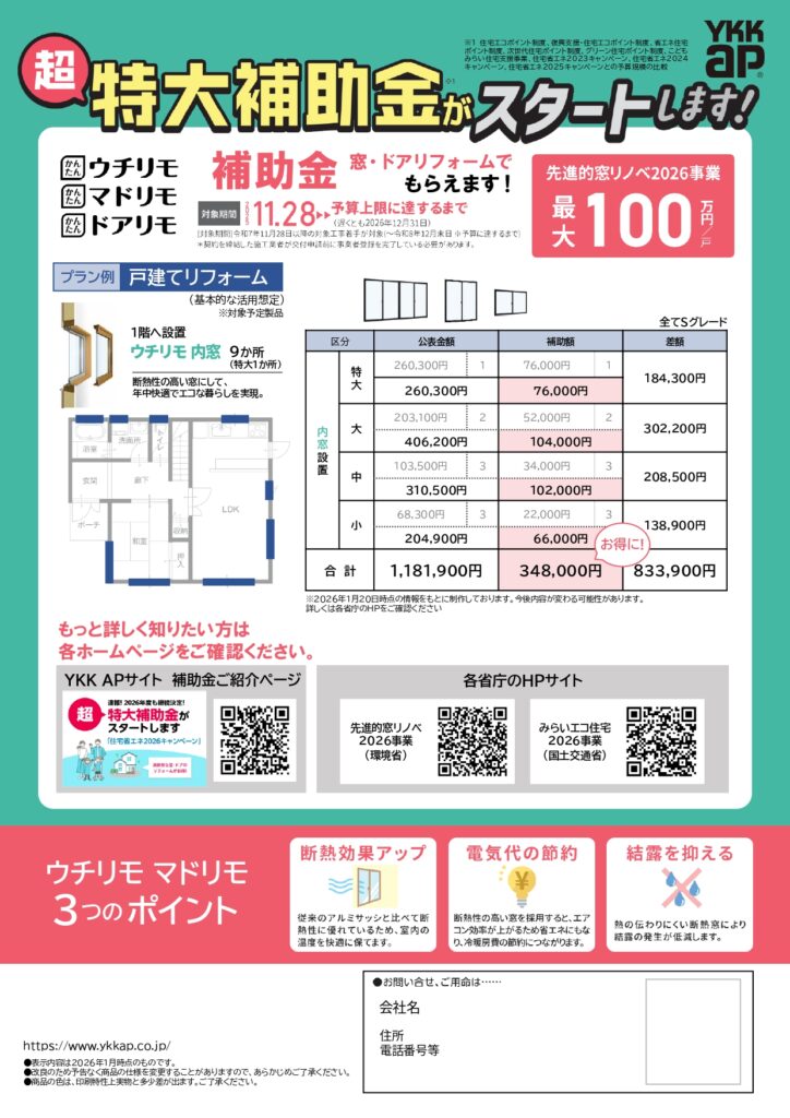 -YKK APからのお知らせ- 最新リーフレット「冬の住まいのお悩み 窓リフォームで解決!!」